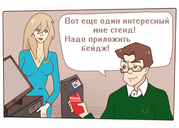 - После регистрации данные посетителя записываются в электронном виде на бейдж или браслет - «электронная визитка»;