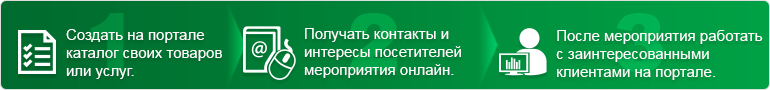 - Возможность работать с заинтересованными посетителями по завершении мероприятия - обновлять каталоги на сайте Сервиса и в личных кабинетах, проводить среди целевой аудитории рекламные и промоакции и т.д.