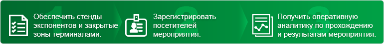 Обеспечить стенды экспонентов и закрытие зоны электронными терминалами.
